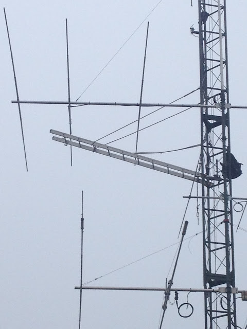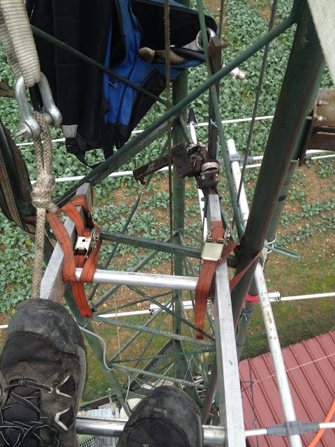 Mise en place du téléphérique pour monter l’antenne dans le pylône