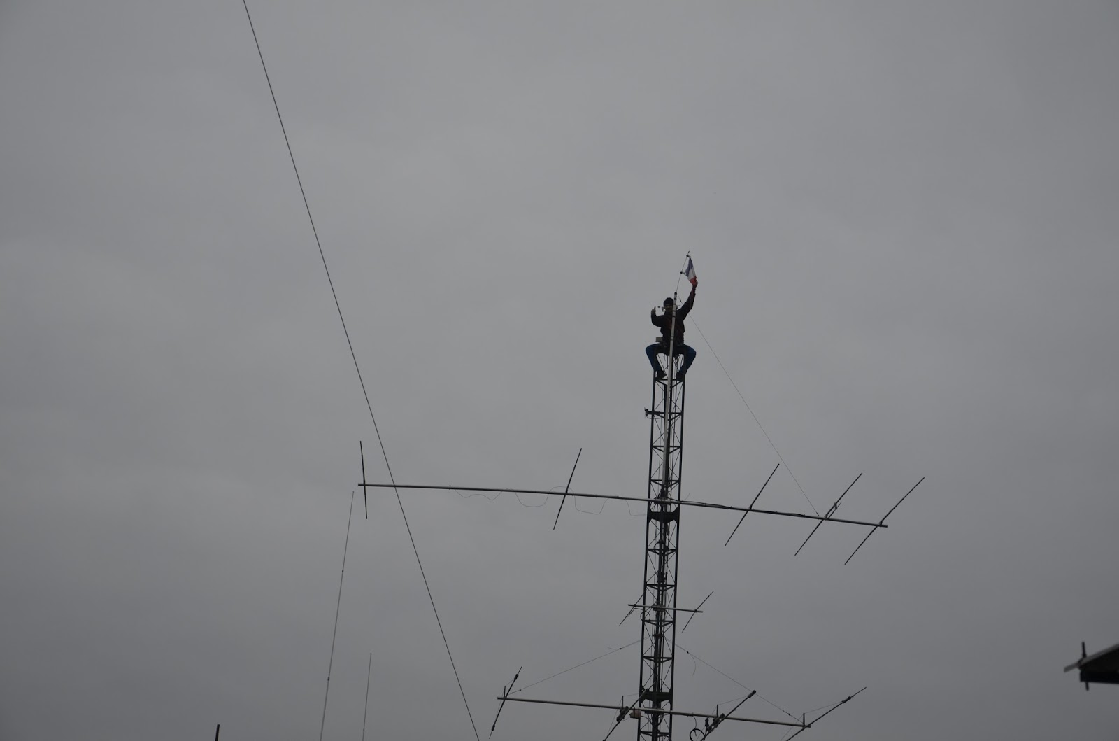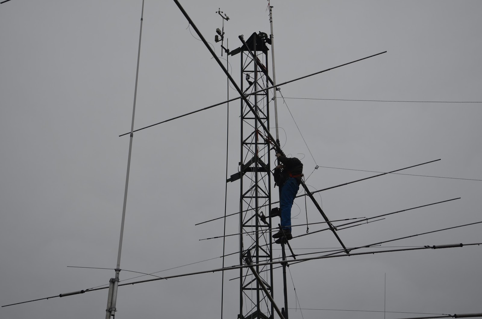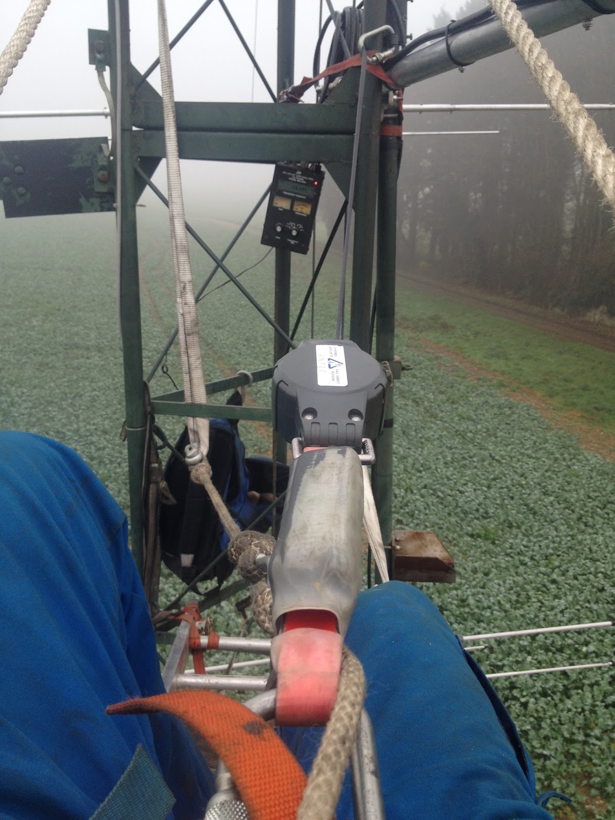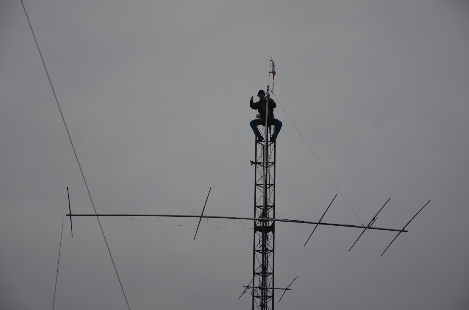 Mise en place du téléphérique pour monter l’antenne dans le pylône