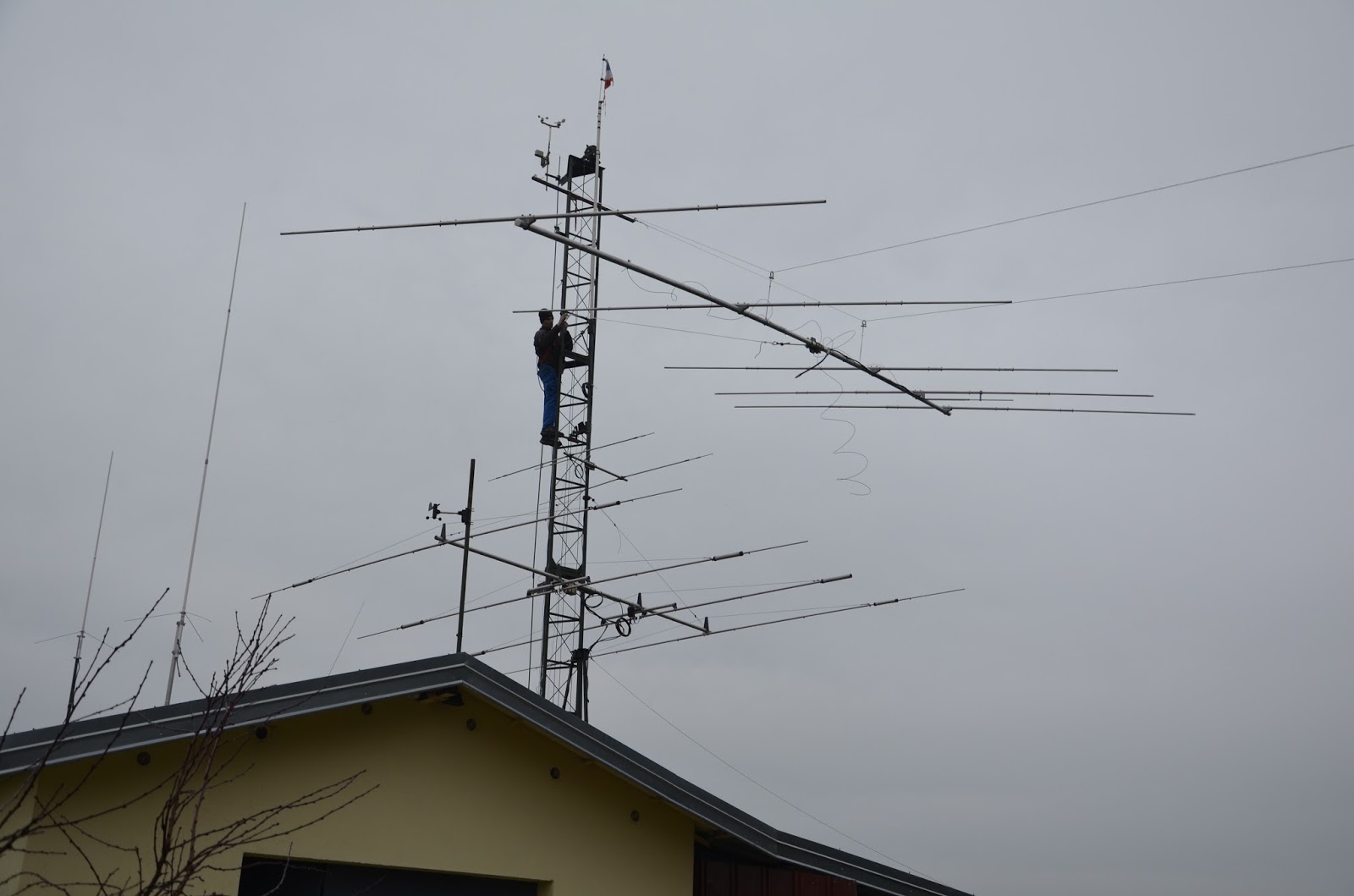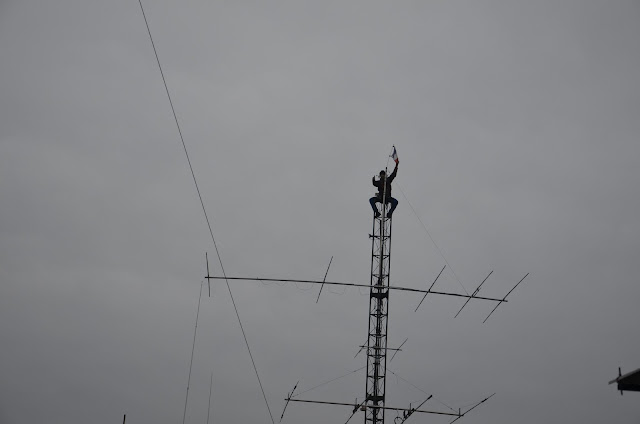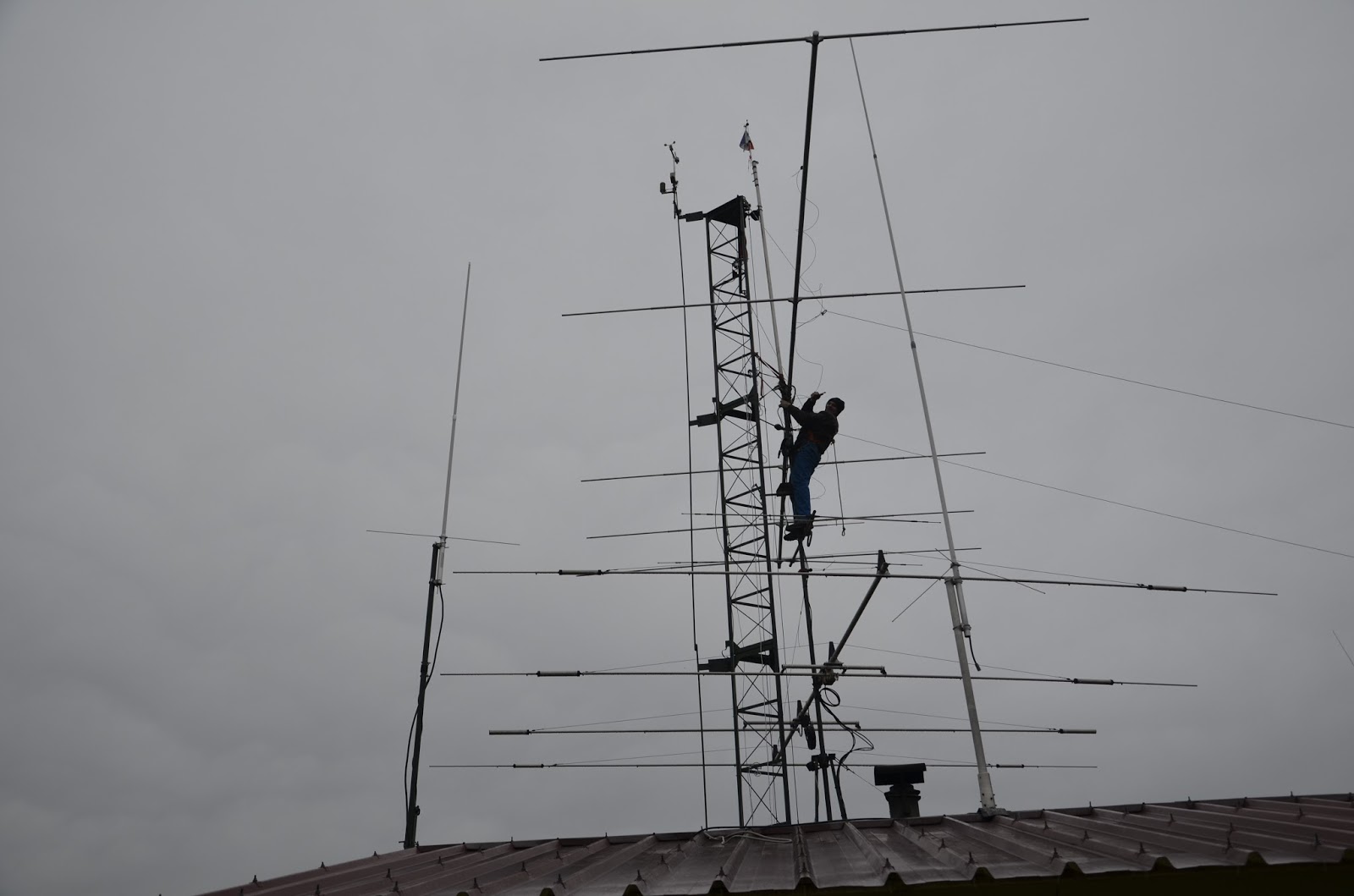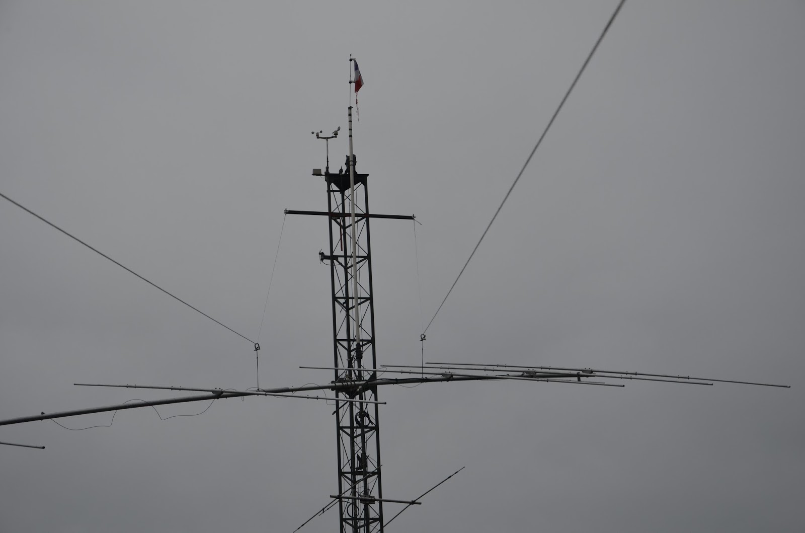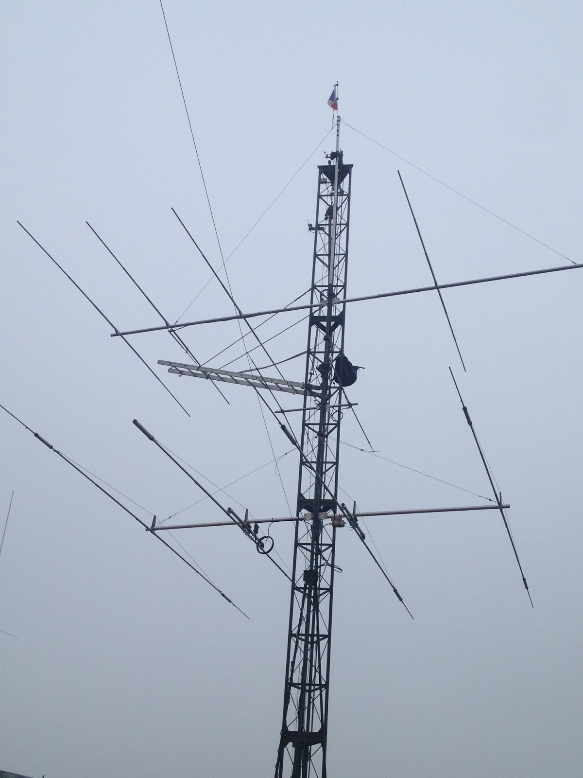 Mise en place du téléphérique pour monter l’antenne dans le pylône