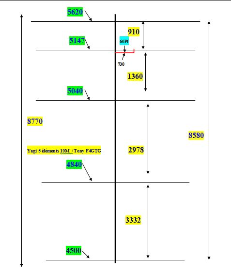 Voici mon antenne Yagi 5 éléments pour le 28.510 Mhz Calculer sur MMANA par F4CXO Christian et F4GTG Tony